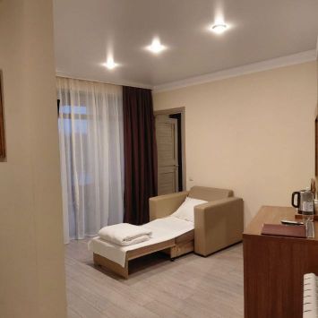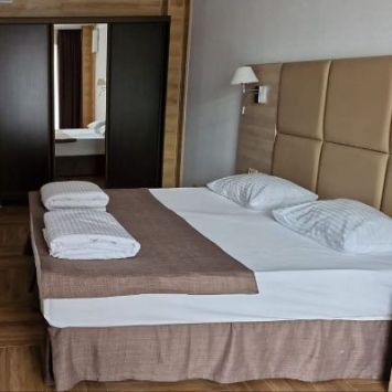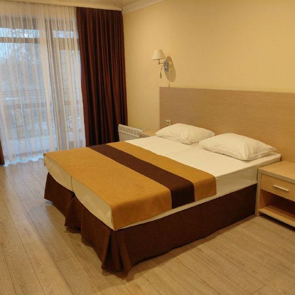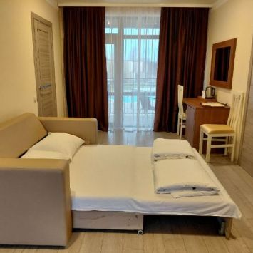 Для гостей предлагается размещение как по стандартным номерам, так и в люксовых апартаментах. На территории комплекса функционирует охраняемая автостоянка, оборудован открытый бассейн, обустроена игровая детская площадка, а также просторная пляжная зона с лежаками.